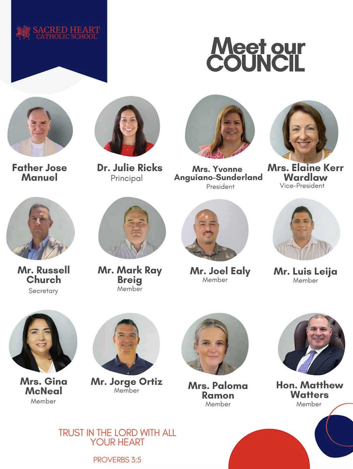 The Sacred Heart School Council unites school leadership, parents, and local community members to enhance understanding, build mutual respect, and collaboratively drive school improvement. Every month, this dedicated group convenes with a singular mission: to forge our school's future by meticulously reviewing financials, shaping vital policies, and strategically planning impactful programs and fundraisers—all with the holistic growth of every student at the forefront.